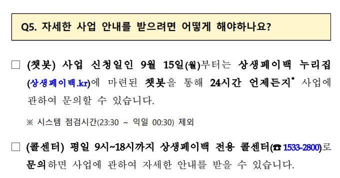 - 온라인 : 상생페이백 누리집(상생페이백.kr)