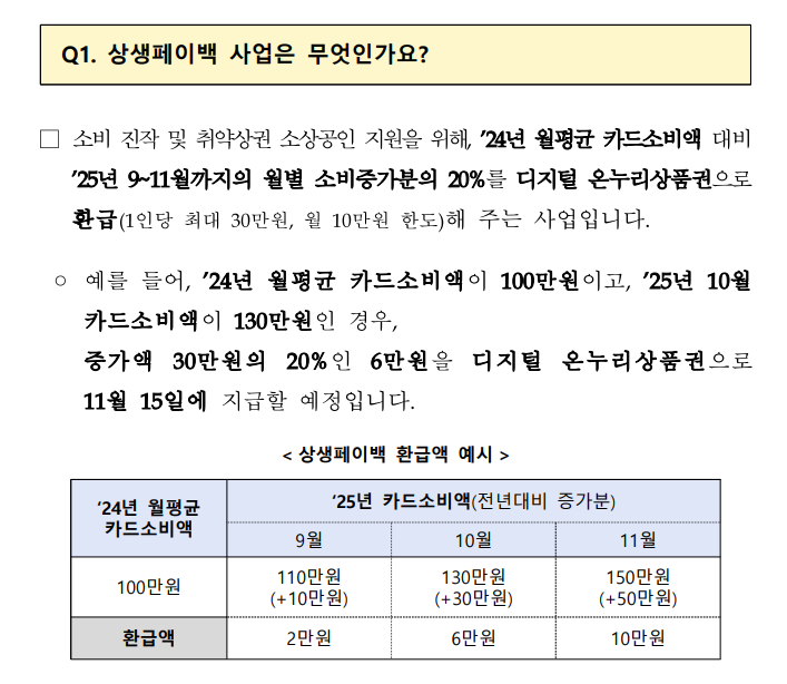 정부는 내수 활성화와 전통시장·소상공인 매장 이용을 늘리기 위해 상생페이백 제도를 시행합니다.